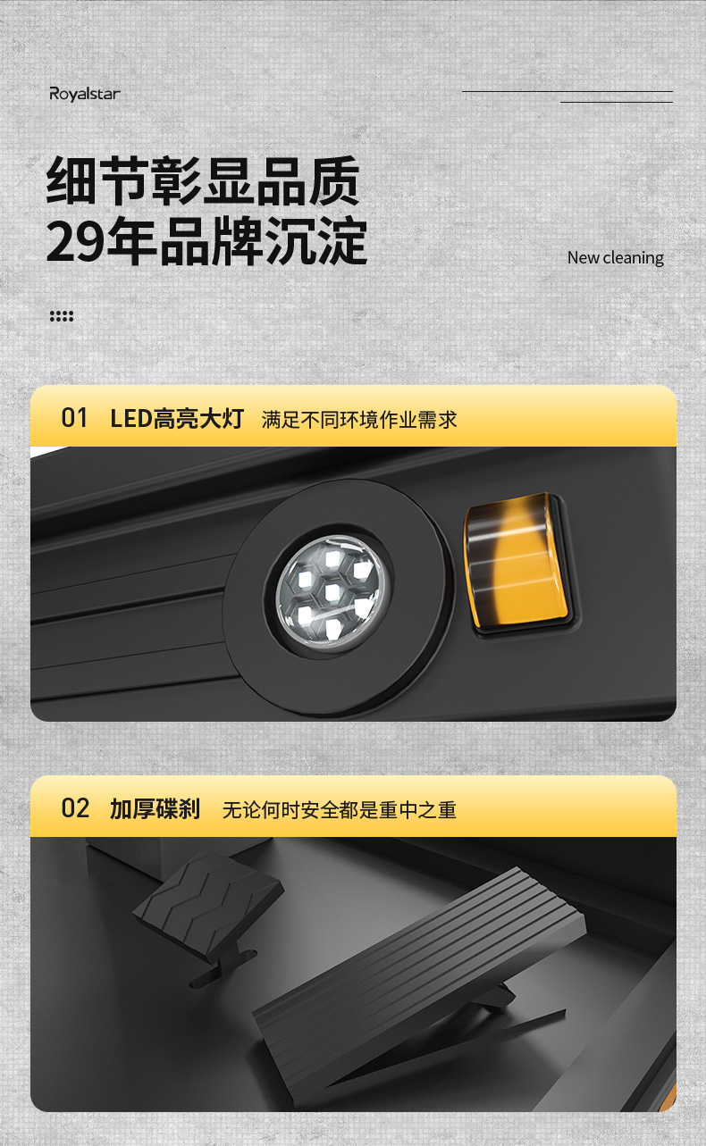 榮事達RS-CAR180 駕駛式掃地機配備了風扇,無需擔心夏季長時間戶外使用時的高溫問題。方向盤操作更加靈活方便,配備了舒適座椅,提升了人性化需求。腳剎和警示燈設計提升了操作的安全性能。榮事達RS-CAR180 駕駛式掃地機采用全封閉設計,防塵防雨,避免了在戶外操作過程中的很多問題,一次充電,可以超長續航,避免了反復充電的問題,噴霧設計解決了清掃過程中粉塵過大的問題。