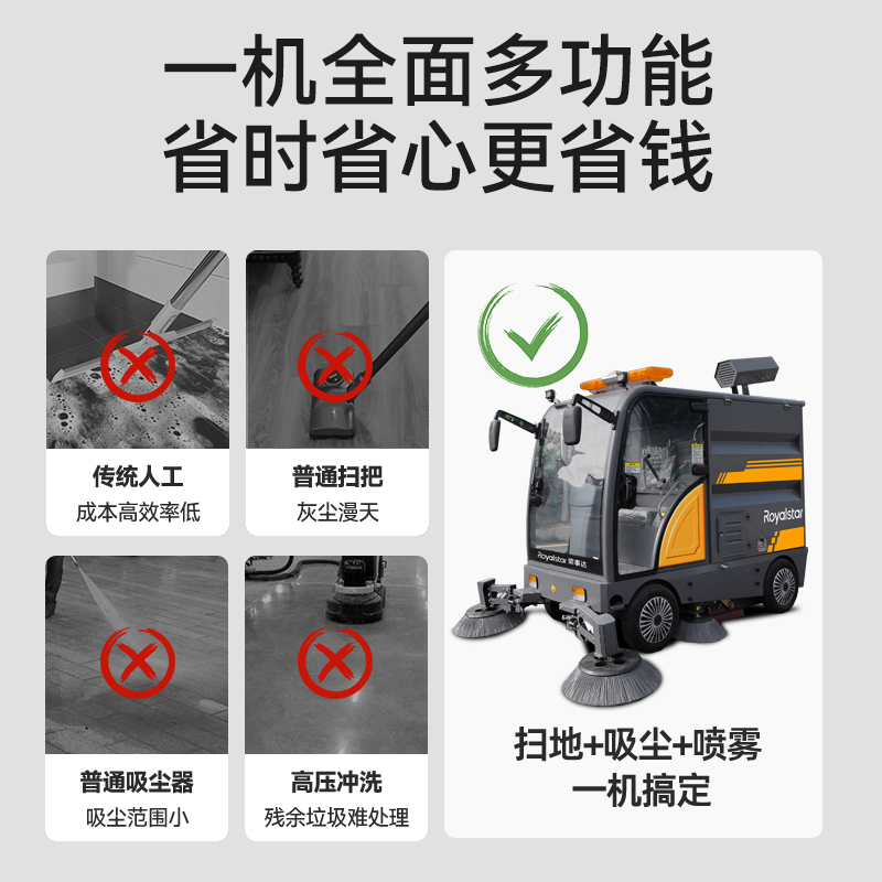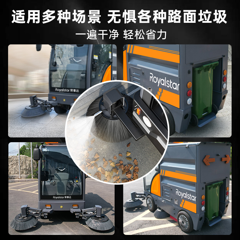 四輪清掃車240L掛桶清潔,1小時高效清掃25000㎡,磚頭可清掃,強勁4邊刷+4主刷系統(tǒng),8700W大功率動力,掃...