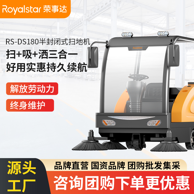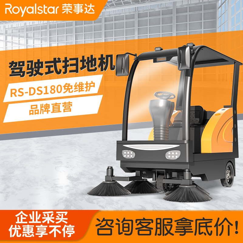 榮事達RS-DS180 駕駛式掃地機榮事達DS180 駕駛式掃地機配備了四個強力清掃邊刷,大幅度提升了設備的清掃效率,采用不銹鋼大容量雙水箱,滿足一些大...