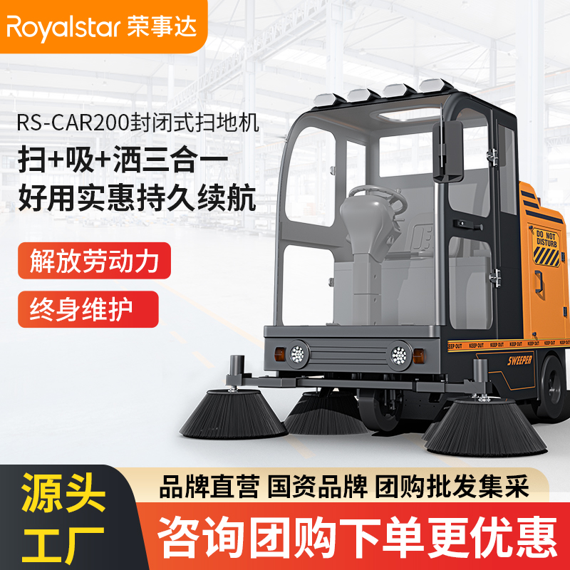 榮事達RS-CAR200 駕駛式掃地機配備了雙吸風電機,采用過載欠壓保護裝置,使用更加安全,駕駛式掃地機不僅配備了自...