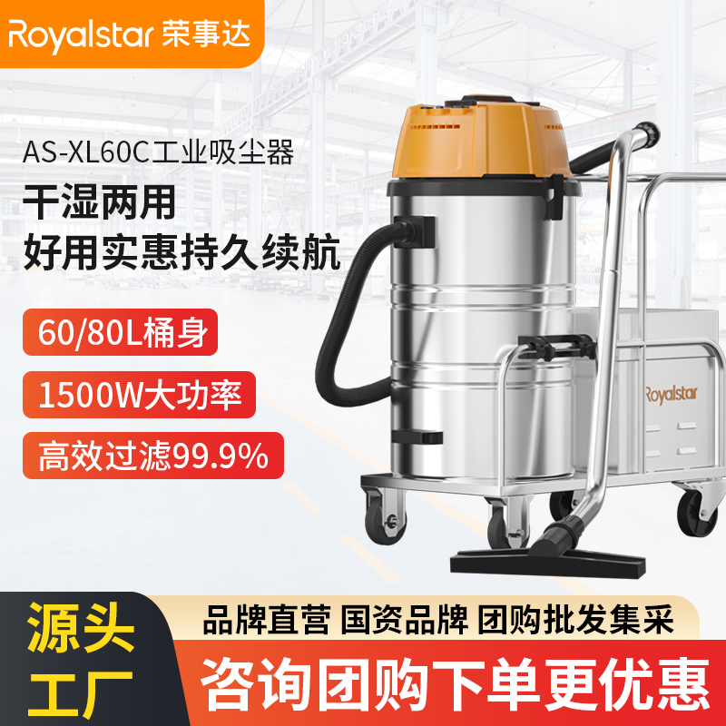 榮事達(dá)1500W工業(yè)吸塵器AS-XL60C、AS-XL80D兩種規(guī)格可選,60L/80L容量桶身,干濕兩用無線清潔,...